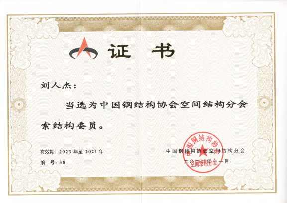 副教授刘人杰当选为中国钢结构协会空间结构分会索结构专家委员。