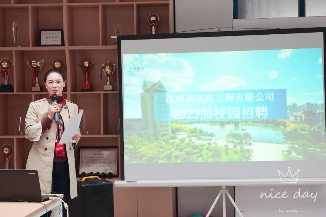 会上,牛金亭同志对滨州市人才引进政策进行讲解,全面介绍了滨州市区位优势、来滨毕业生优惠政策、大学生的住房保障体系、人才发展生态等内容,为广大学子提供就业和创业指导。他表示,希望大家能够来到滨州,施展才华、展现自我,开启人生新历程,共同谱写“在滨州、知滨州、建滨州、爱滨州”的精彩华章。
