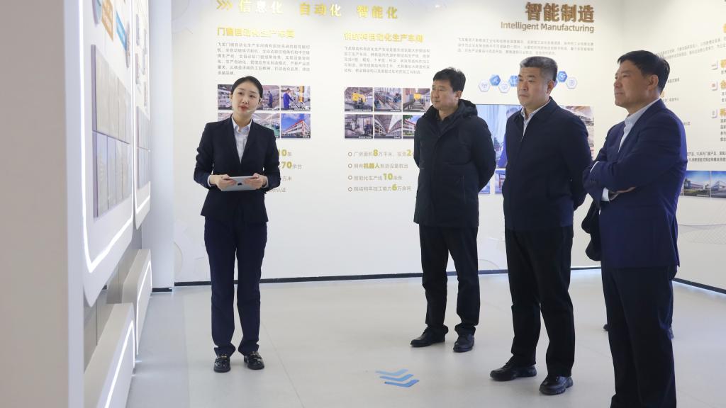 初磊一行走进飞龙集团企业展厅,通过观看专题宣传片系统了解了企业深耕行业的发展脉络、厚植于心的香港三级与多元协同的产业布局,对集团的综合实力与发展战略形成全面认知。随后,走访人员深入飞龙钢构、门窗智能制造工厂一线,实地观摩现代化生产流水线的高效运转与智能制造工艺的精准应用,直观感受企业在生产制造领域的硬核实力。在飞龙创新研发中心,重点参观了超低能耗建筑示范项目及科技成果展厅,通过与企业技术负责人深入交流,详细了解了新型环保建材研发、绿色建筑技术创新等方面的核心突破,对集团以科技创新驱动产业升级的发展路径有了更深刻的认识。