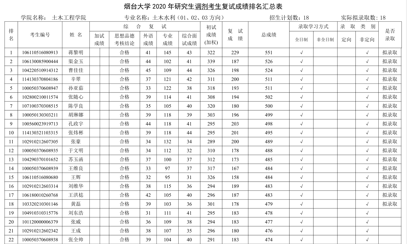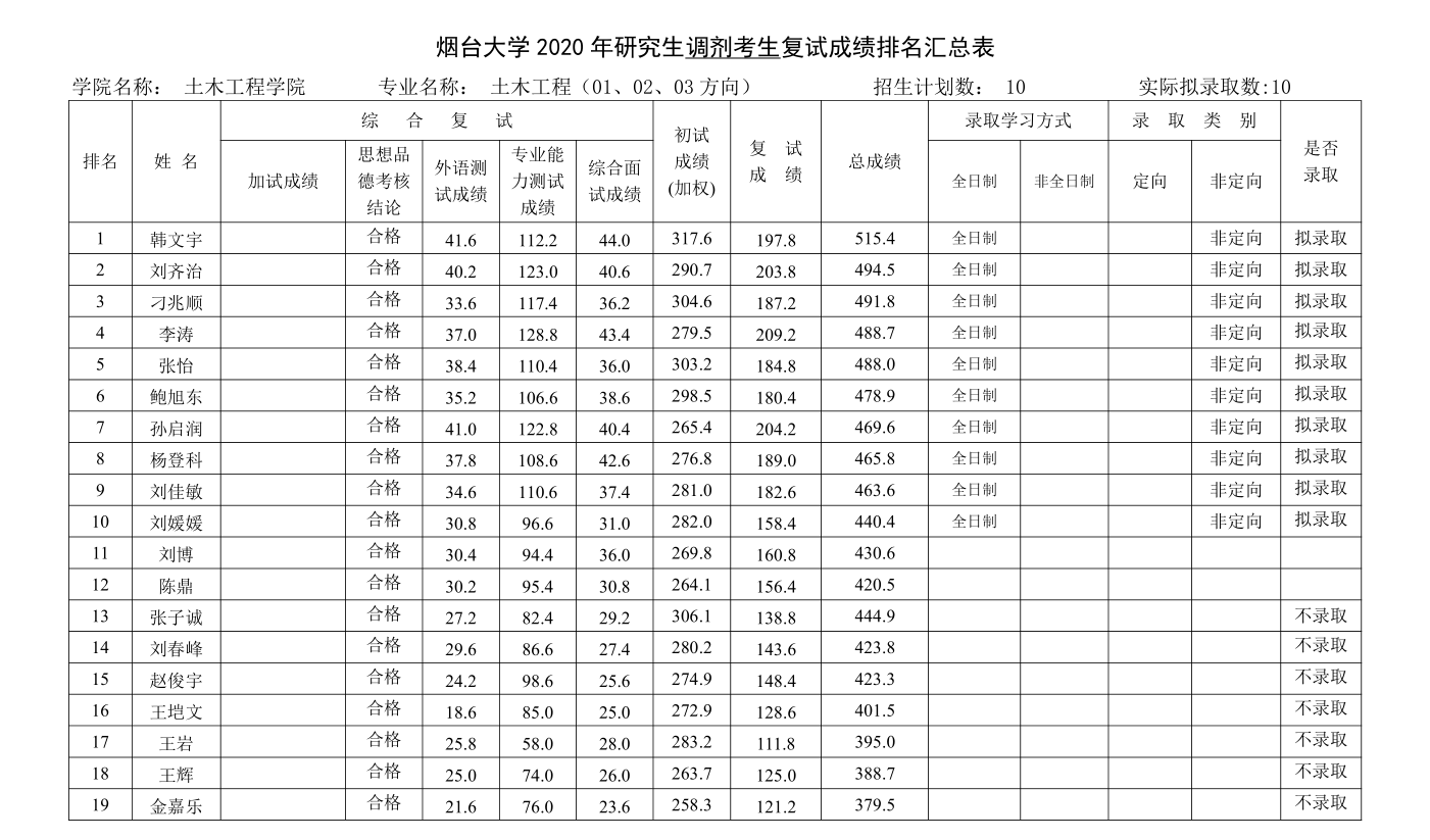 2020年研究生调剂考生复试成绩排名