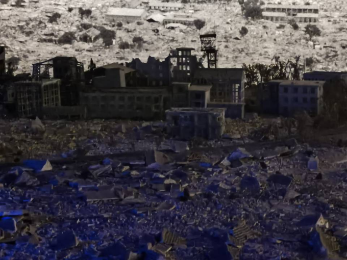 接着我们踏上一个沙盘,这是按等比例缩小再现的唐山地震后的城市废墟,房屋倒塌、桥梁断裂,满目苍夷。然后,我们似走进了一条街道,身旁身后乃至头顶脚下,全是倒塌的房屋、倾斜的电线杆。或许前者是旁观者俯视这座城,只觉灾害的惨烈,而后者则将置身其中,我们便成了唐山大地震幸存者的一员,害怕无助涌上心头,不再只是震撼,而是想要逃离,想要帮助。
