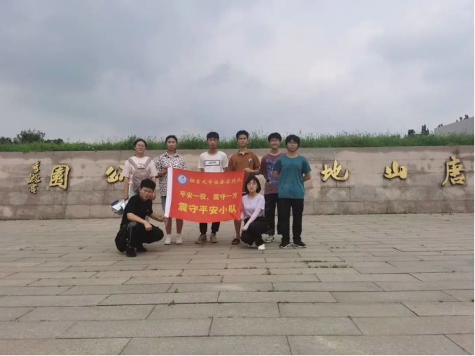 图为震守平安小队在唐山地震遗址公园合照 魏亚宁 摄