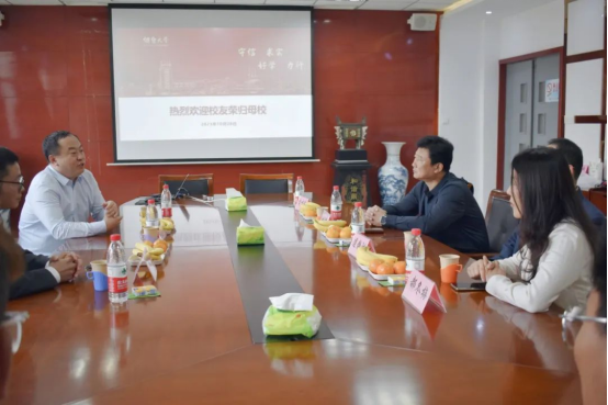 1996级校友邵永军、2000级校友马典队荣归母校。10月28日下午3点,两位校友同当年辅导员曲峰、香港三级